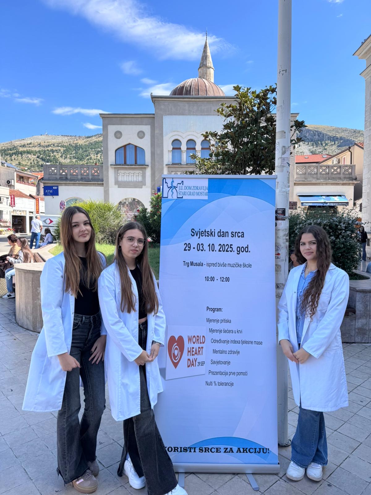 Povodom Svjetskog dana srca, koji se obilježava 29. septembra, naše učenice su aktivno učestvovale u javnoj akciji koju je organizovala J.U. Dom zdravlja Stari Grad Mostar.